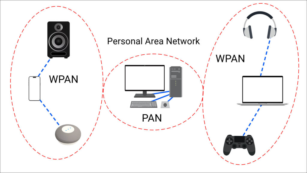 As PANs são projetadas para suportar a comunicação direta entre dispositivos como smartphones, computadores, caixas de som, fones de ouvidos e controles remotos.