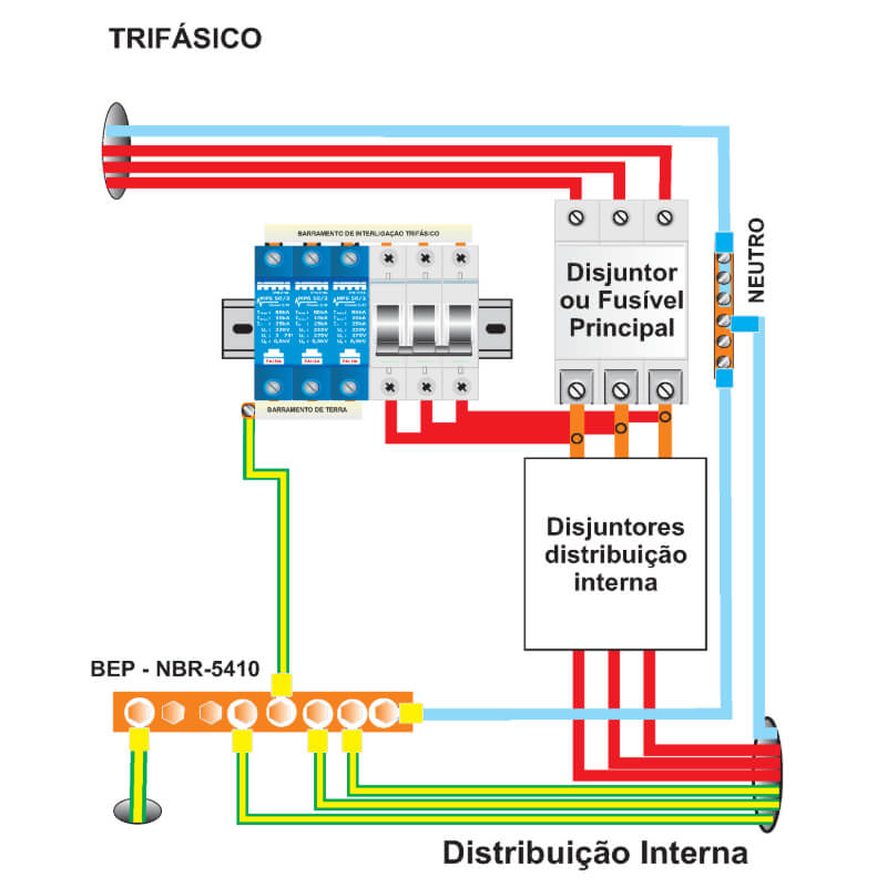 • Local de Instalação: Geralmente no quadro geral de entrada de energia, próximo à conexão com a rede elétrica.