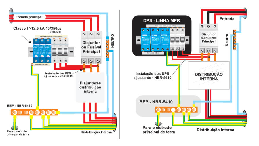 Instalação dos DPS classe I, a montante da entrada principal da rede de energia – NBR5410