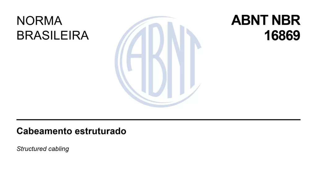A ABNT NBR 16869 é a norma de cabeamento estruturado que especifica, de forma integrada, requisitos de planejamento, práticas de instalação, documentação e administração, além de ensaios/inspeções e arranjos específicos (ensaios ópticos, MPTL/Direct Attach, AIM e PON).