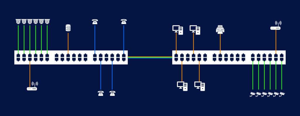 A segmentação de rede, por meio de VLANs (Virtual Local Area Networks), é uma configuração muito utilizada para isolar diferentes departamentos ou sistemas dentro da empresa, aumentando a eficiência na transmissão de dados.